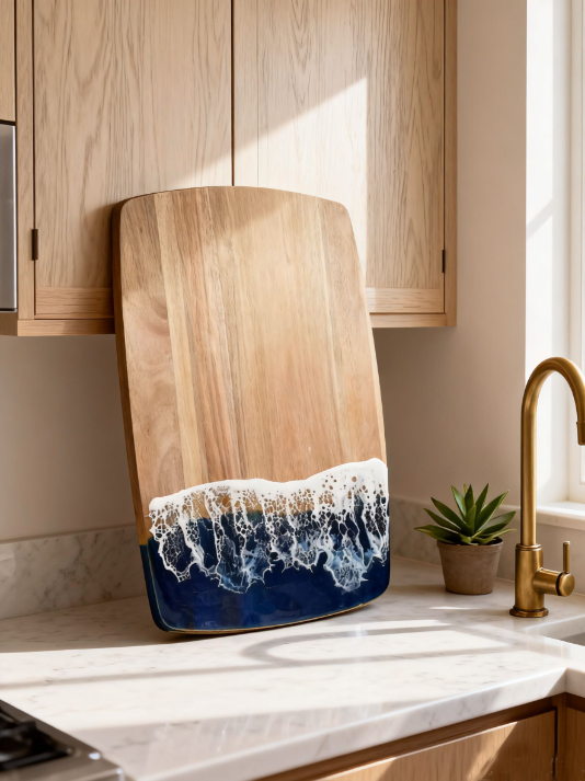 Wholesale Custom Acacia Sea Wave Resin Wooden Cutting