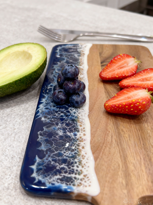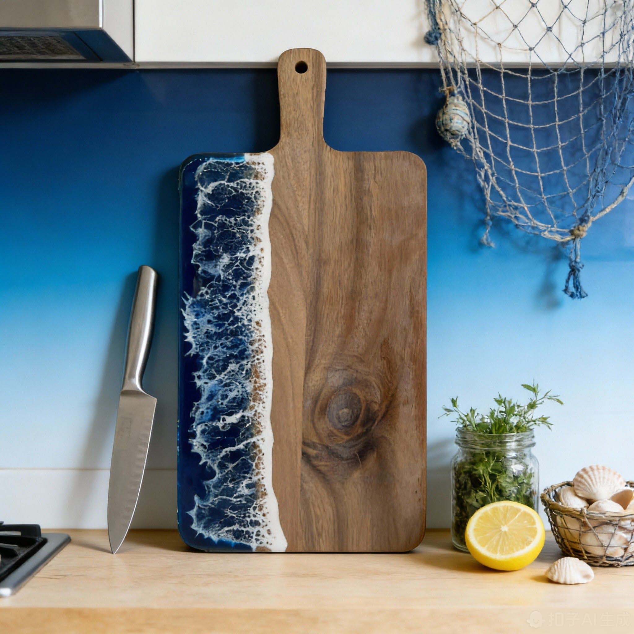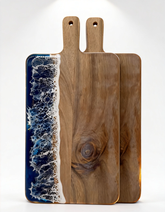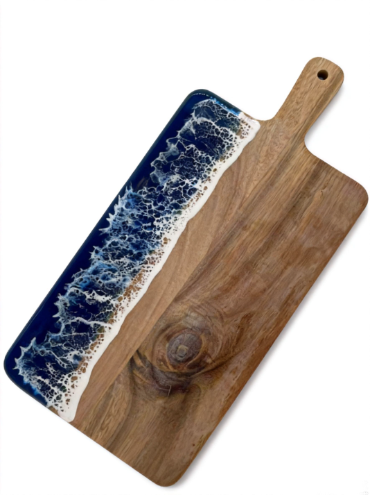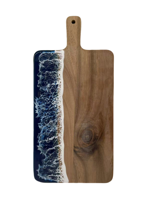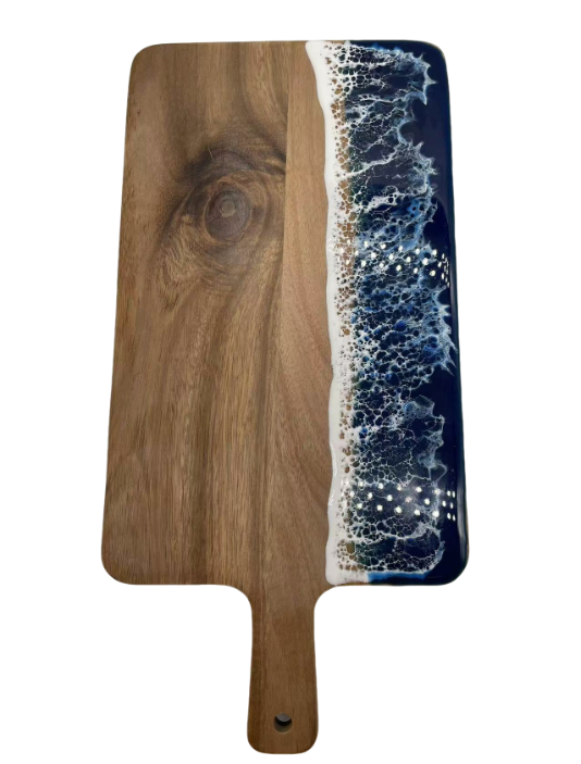 Wholesale Custom Acacia Sea Wave Resin Wooden Cutting Board Serving Board for party