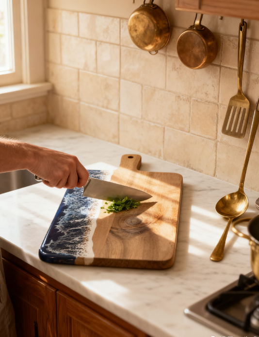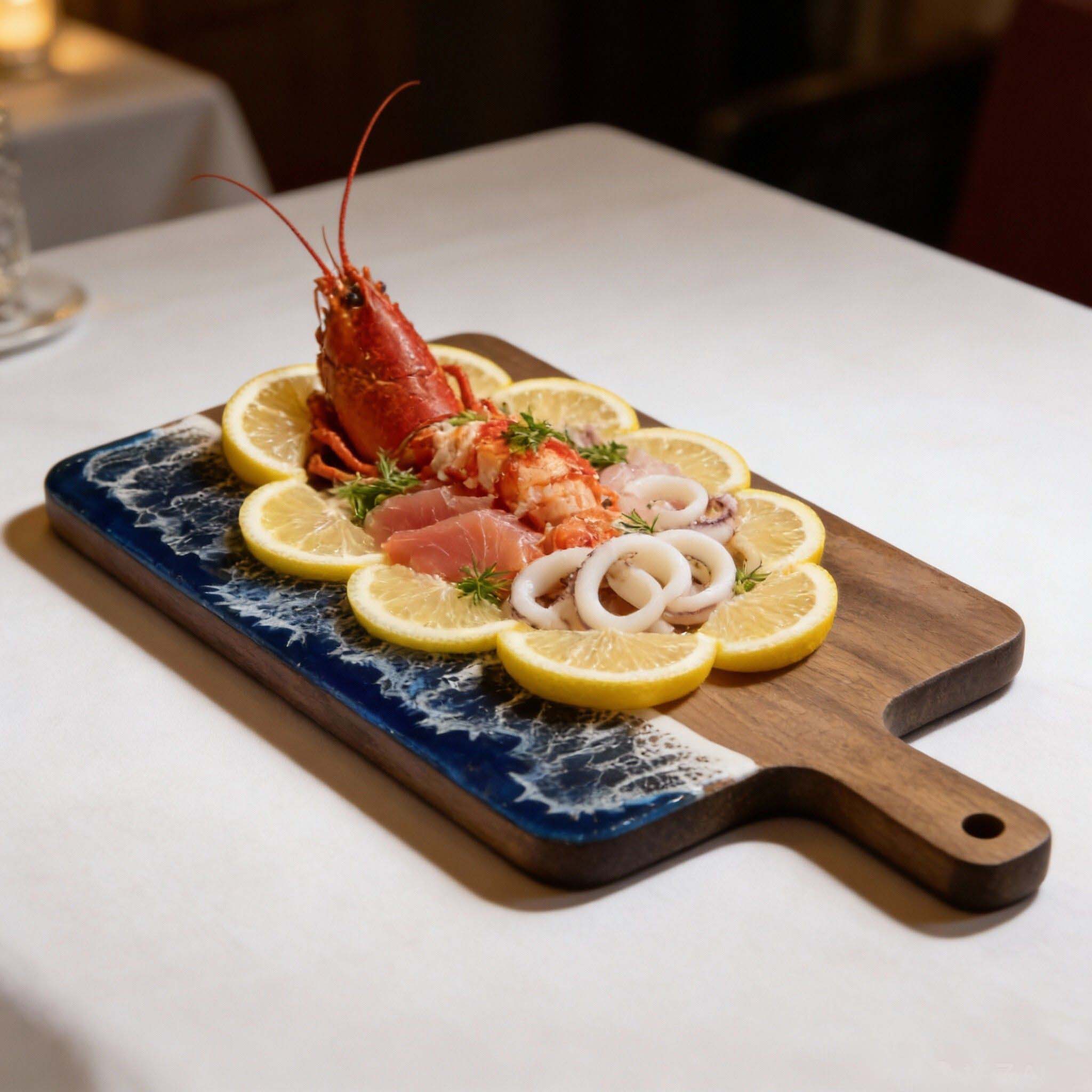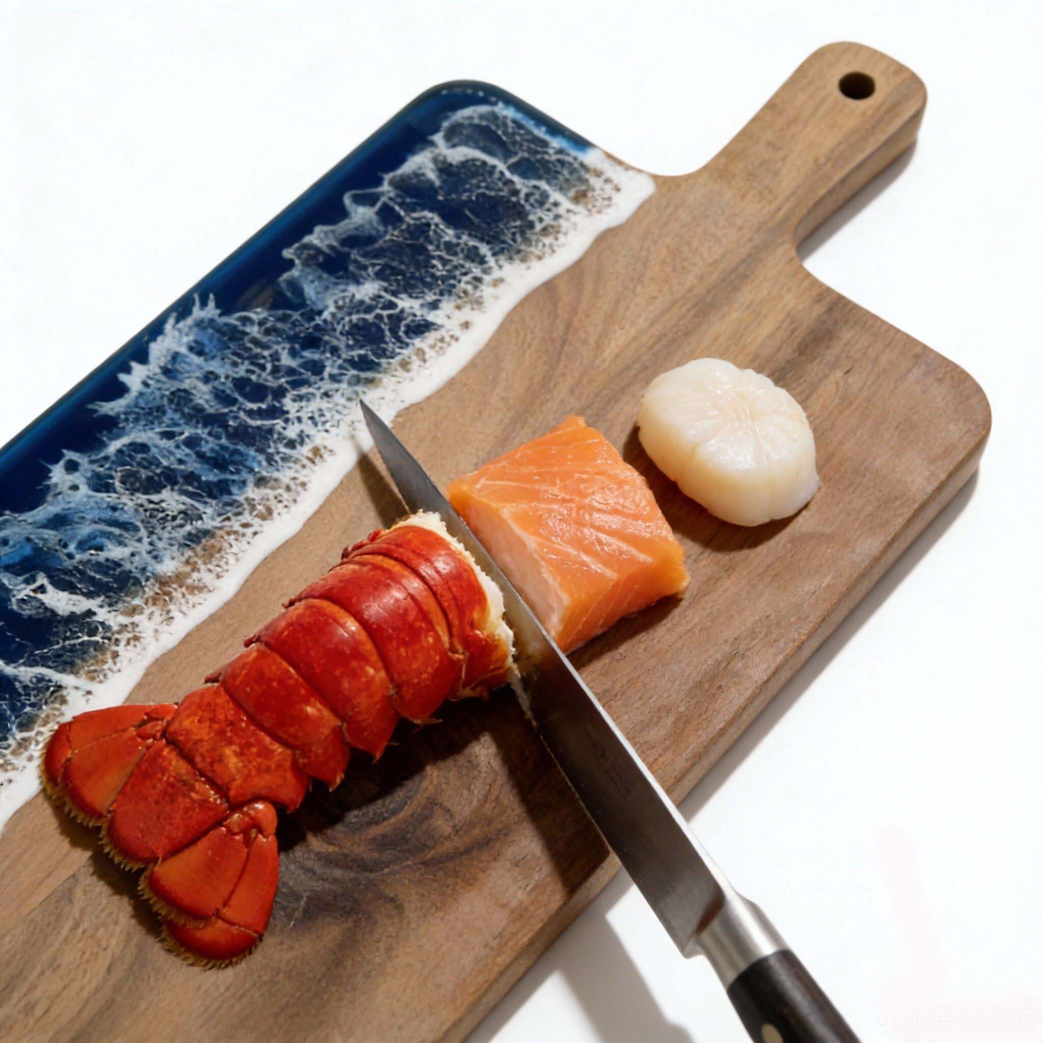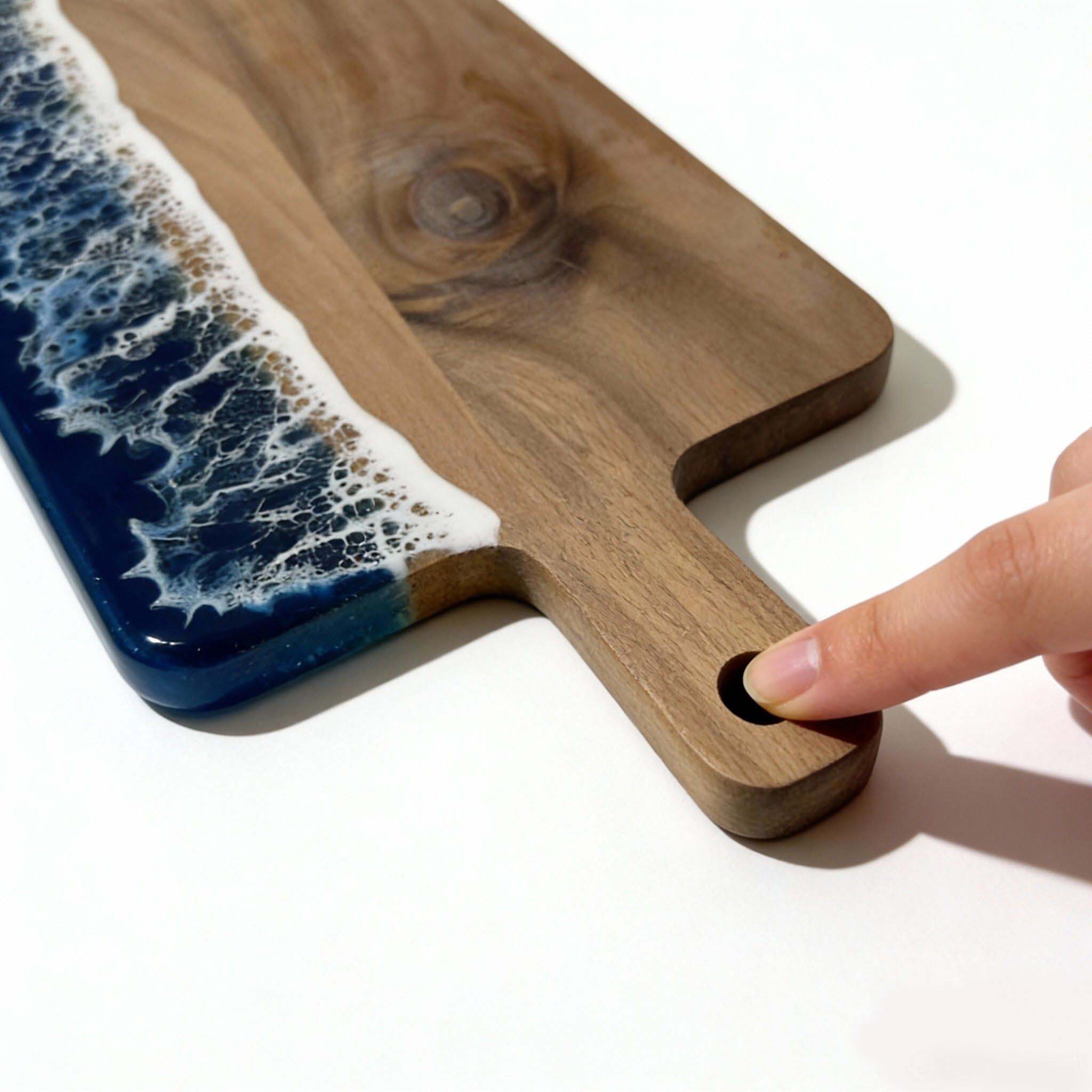 Wholesale Custom Acacia Sea Wave Resin Wooden Cutting Board Serving Board for party
